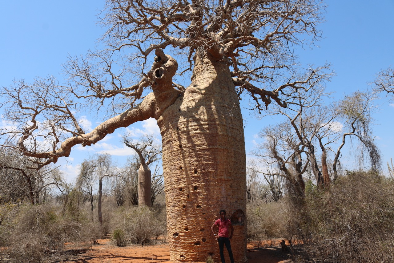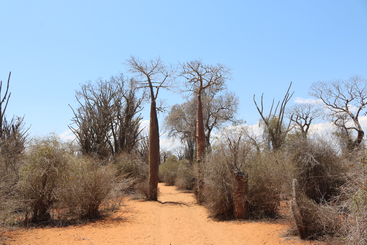 The area inland from the coastline in South West Madagascar is characterised by dry, arid landscapes – called ‘spiny forests’. This ecosystem is unique to Madagascar. Even this harsh environment has an amazing diversity of life – including the resilient Baobab tree.