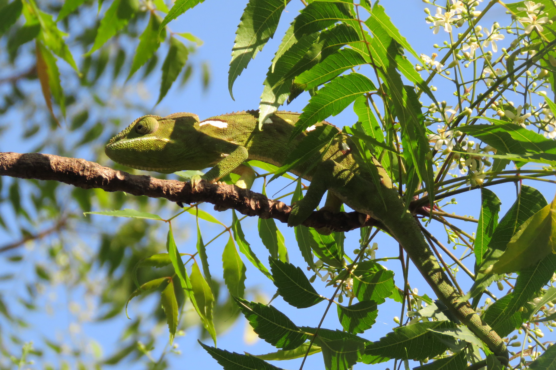 Even after the walk, a simple leisurely jaunt around the Kirindy lodge itself can be rewarding. The birding is quite nice, and it is a great opportunity to spot some chameleons and lizards as well. Of course, the Fossa would always be lurking around the lodge looking for scraps. The usually shy Fossa are quite tolerant of human presence in Kirindy around the eco-lodge and this is a great opportunity for great photos.