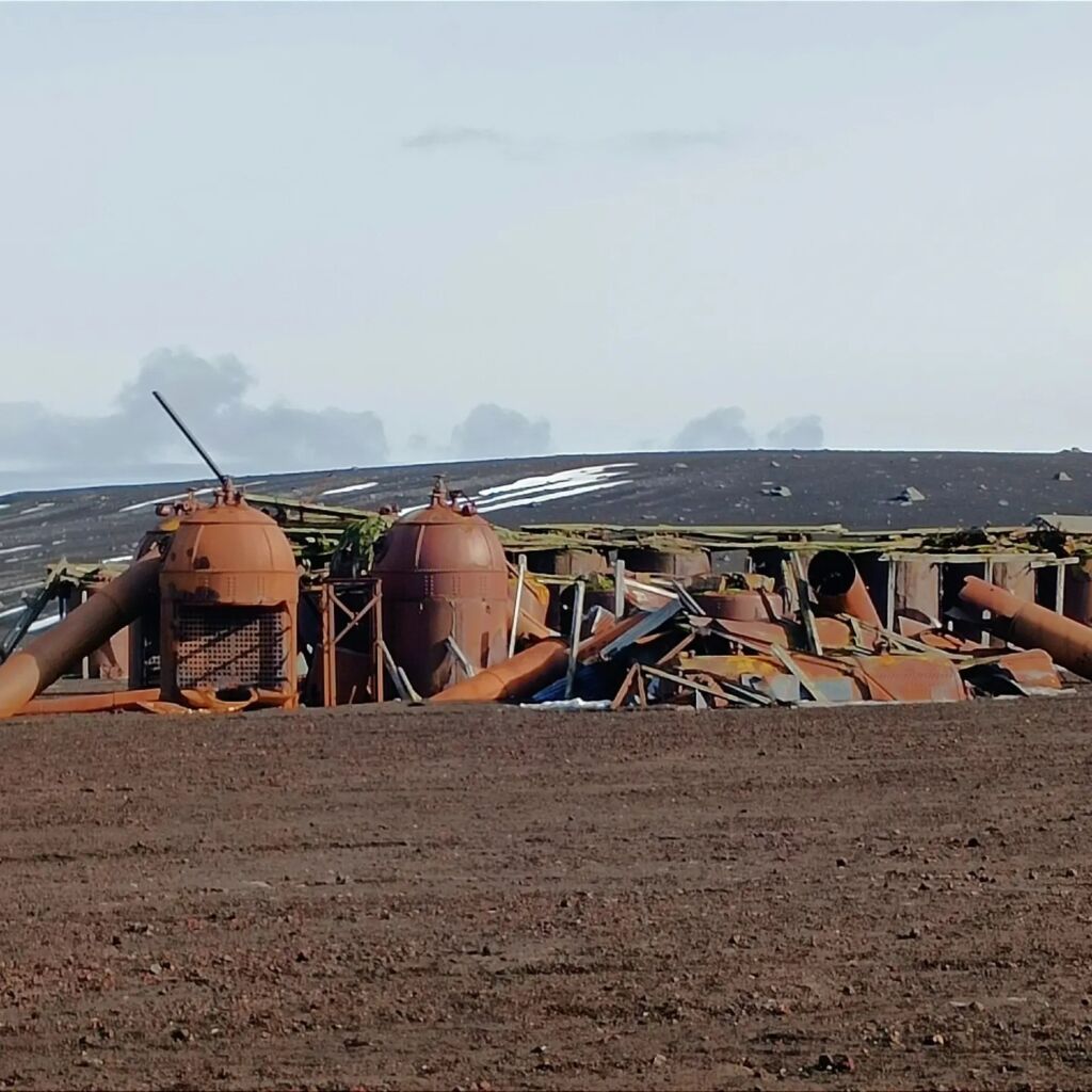 You walk through the remains of a whaling station, all twisted metal, collapsed structures, machinery that once believed it had purpose… Now? Seals nap beside it. Penguins walk through it. Time has moved on. The land has taken back the narrative.