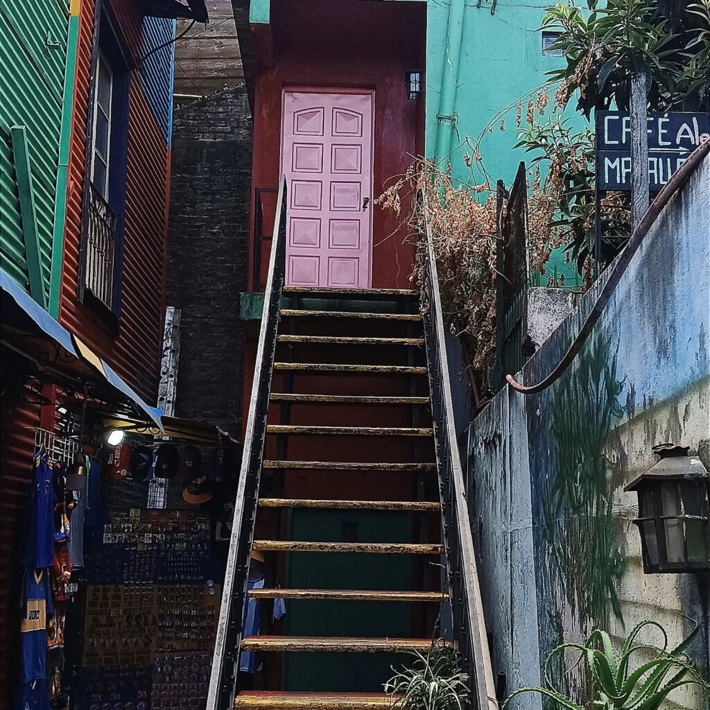 While Recoleta is elegant and aristocratic, La Boca is raw, vibrant, and unapologetically theatrical. This neighborhood was once home to thousands of dockworkers, many of them immigrants from Genoa in Italy. The houses here were built using scrap materials from shipyards. Paint was expensive. So residents used leftover paint from ships. Different colors for different walls. The result was accidental art. A neighborhood painted like a carnival.