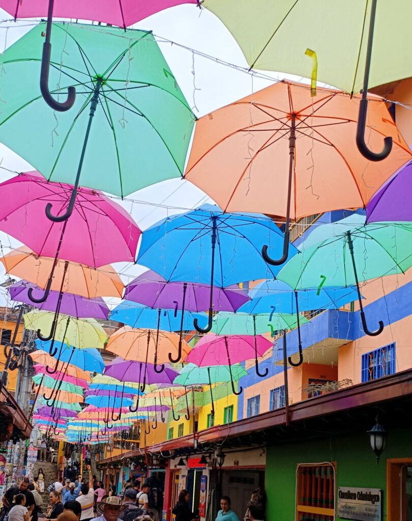 Guatape is where Colombia lets its hair down… a riot of color, commerce, and controlled chaos. Houses painted like they’ve had too much coffee. Walls telling stories through zocalos, carved, painted panels that are part art, part identity.